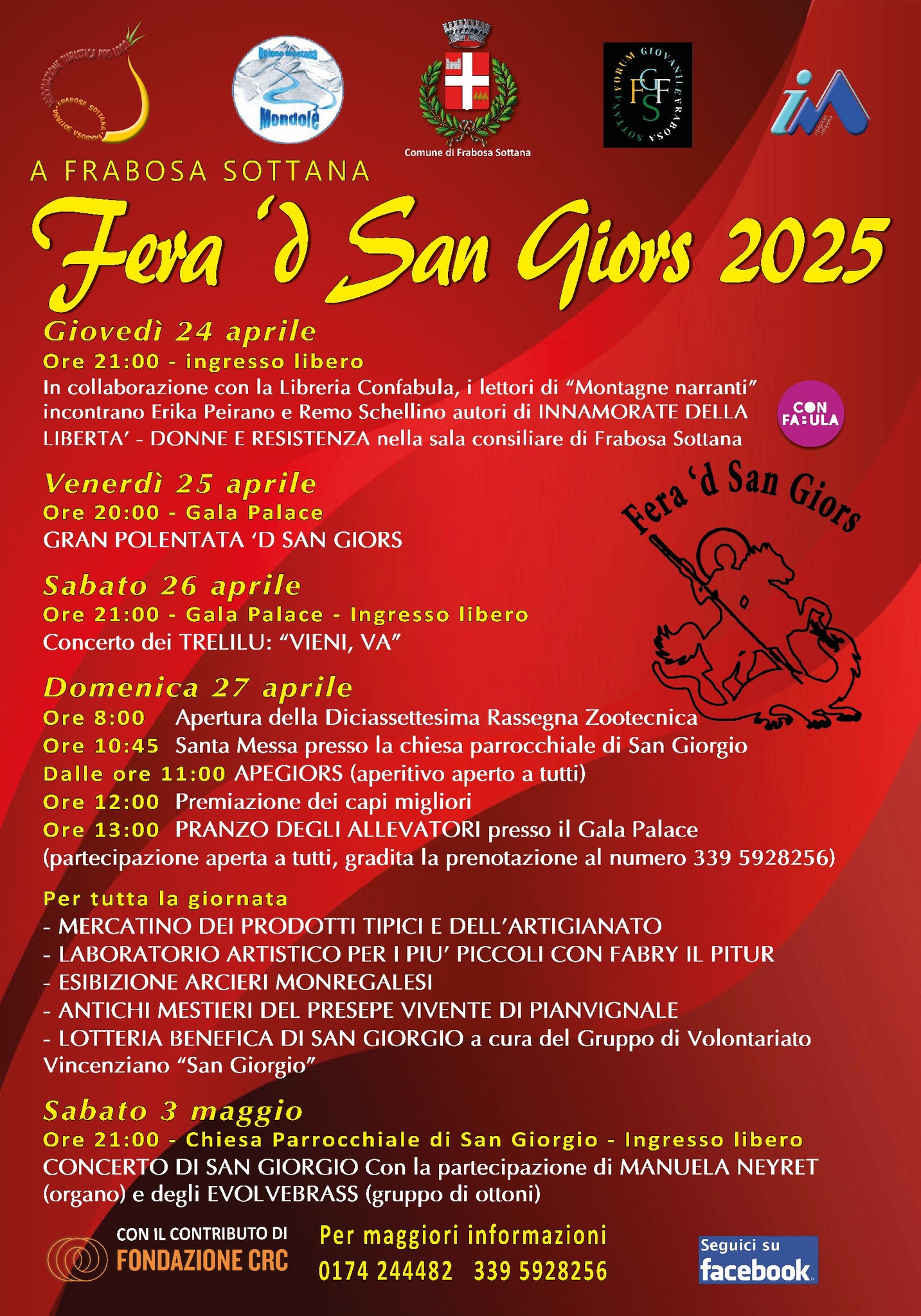 Nel pomeriggio, inoltre, si terranno i laboratori per bambini e famiglie organizzati dalla condotta Slow Food Monrewgalese, Cebano, Alta Valle Tanaro e Pesio con il CFP Cebano-Monregalese (iscrizione obbligatoria al numero 0174.244481) e, alle 16.00, sempre presso il GalaPalace, lo scrittore e guida alpina Enrico Camanni incontrerà i lettori per un'intervista-dibattito sul suo ultimo libro "Se non dovessi tornare. La vita bruciata di Gary Hemming, alpinista fragile". Tanti gli ospiti di questa 35ma edizione, ricca e speciale, che porterà a Frabosa Sottana uno sguardo peculiare e approfondito su uno degli alimenti base della dieta delle nostre vallate, e ad aggiungere storie locali a questa grande storia che unisce il cuneese alle altre vallate d'Italia ci penseranno i colori, i profumi e i sapori delle Confraternite.