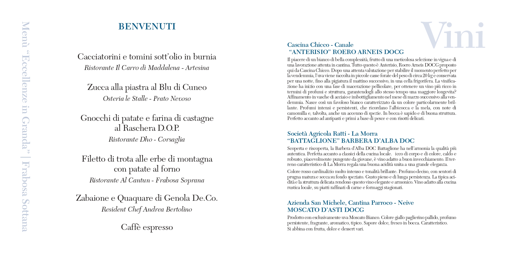 Durante la cena, il servizio di sala sarà a cura degli allievi dell’Istituto Alberghiero di Mondovì, altra importante eccellenza del territorio.