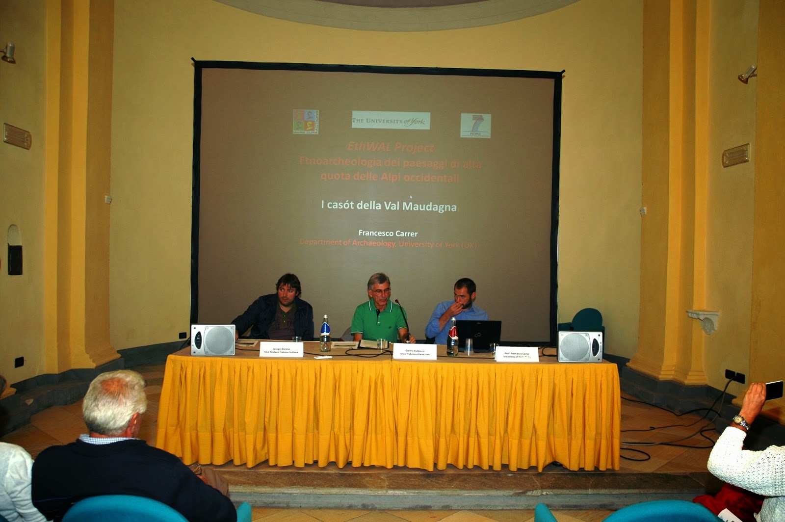 Si è svolta sabato 16 agosto nei locali della Confraternita di Frabosa Sottana la Conferenza sul Progetto EthWAL tenuta dal Professor Francesco Carrer del dipartimento di archeologia della University of York (Regno Unito) organizzata da Gianni Dulbecco (frabosasottana.com) in collaborazione con il Comune di Frabosa Sottana. Il progetto finanziato dalla Comunità Europea, riguarda lo studio delle strutture pastorali di alta quota di due aree campione delle Alpi Occidentali, la Valle Maudagna e la Valle de Freissinieres (Hautes-Alpes, Francia). Le ricerche si sono concentrate su tre tipi di evidenze: le capanne pastorali tradizionali (i casot) in pietra a secco ancora in parte utilizzate, le aree di pascolo selezionate dai pastori per stabulare gli animali (i gias), le strutture seminterrate in muratura utilizzate per conservare e stagionare i formaggi (le selle). Il metodo utilizzato è sia antropologico che archeologico, da una parte infatti vengono intervistati i pastori locali per comprendere le strategie di uso delle alte quote, dall'altra invece vengono studiate in maniera approfondita le strutture, la loro architettura ed i loro spazi interni. La conferenza, seguita da un pubblico numeroso ed attento, ha visto la partecipazione del Vice Sindaco di Frabosa Sottana Dr. Jacopo Denina e da altri componenti il Consiglio Comunale. Al termine della illustrazione del Prof. Carrer, sono state poste numerose ed interessanti domande alle quali il relatore ha risposto con termini di facile comprensione per tutti. Al termine della serata, dopo la consegna di una pergamena ricordo a Francesco Carrer, c'è stato l'impegno di tenere la prossima estate una seconda conferenza che illustrerà i risultati degli scavi effettuati quest'anno che verranno elaborati nei laboratori dell'Università di York nei prossimi mesi. Di seguito un riassunto delle slide della presentazione della conferenza.